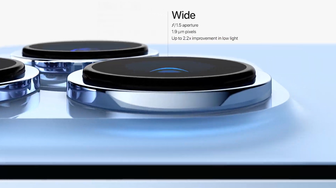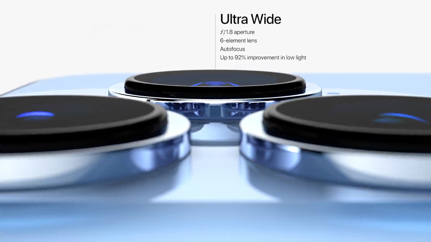 Obsahuje 77mm teleobjektiv, ultraširokoúhlý a širokoúhlý objektiv se stabilizací posunu senzoru pro snížení otřesů fotoaparátu. iPhone 13 Pro má 6násobný rozsah optického zoomu. Ultra širokoúhlý objektiv nyní také nabízí automatické zaostřování. Nový „režim Cinematic“ dokáže rozostřit pozadí videa v reálném čase, sledovat objekty a lidi. Noční režim je nyní také k dispozici na všech zadních kamerách. Obě zařízení budou k dispozici v předprodeji od 24. září.