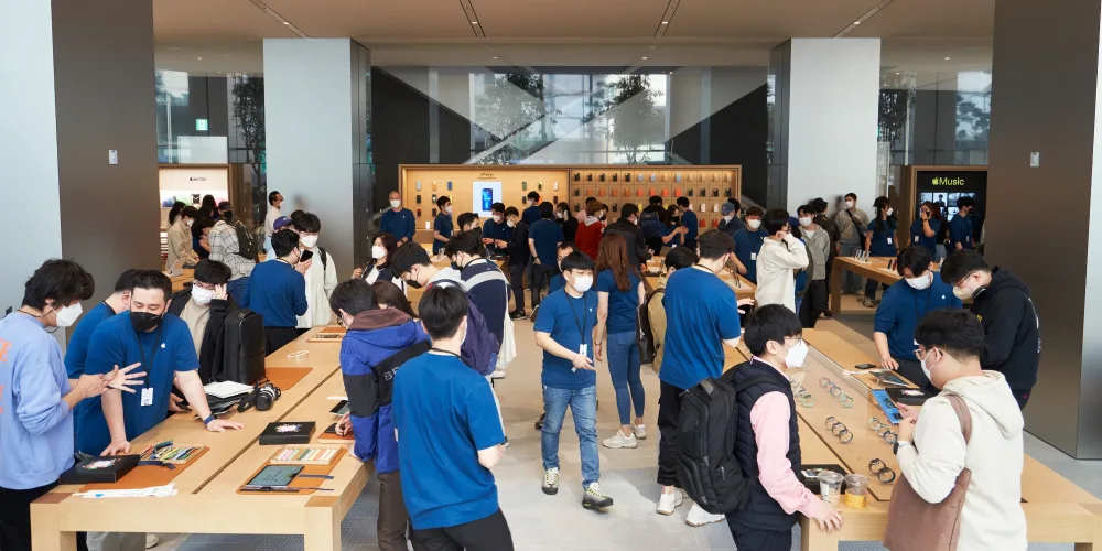 Apple minulý týden otevřel Apple Myeongdong v Jižní Koreji, který je největší v zemi. Po otevření společnost sdílela několik dalších podrobností o prodejně a také několik fotografií zákazníků, kteří obchod navštívili.