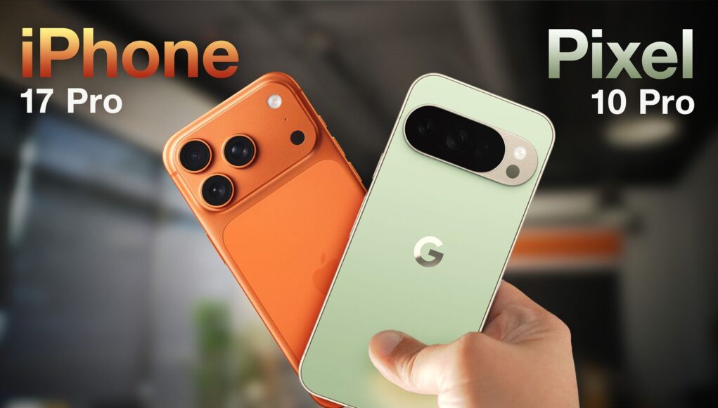 Apple vsadil na „plochou“ kameru místo tradičního výstupku, což vizuálně srovnává iPhone 17 Pro s Pixel 10 Pro. Google používá již několik let horizontální design s objektivy v řadě. iPhone 17 Pro má širší, více čtvercový modul, ale všechny tři objektivy jsou vlevo.