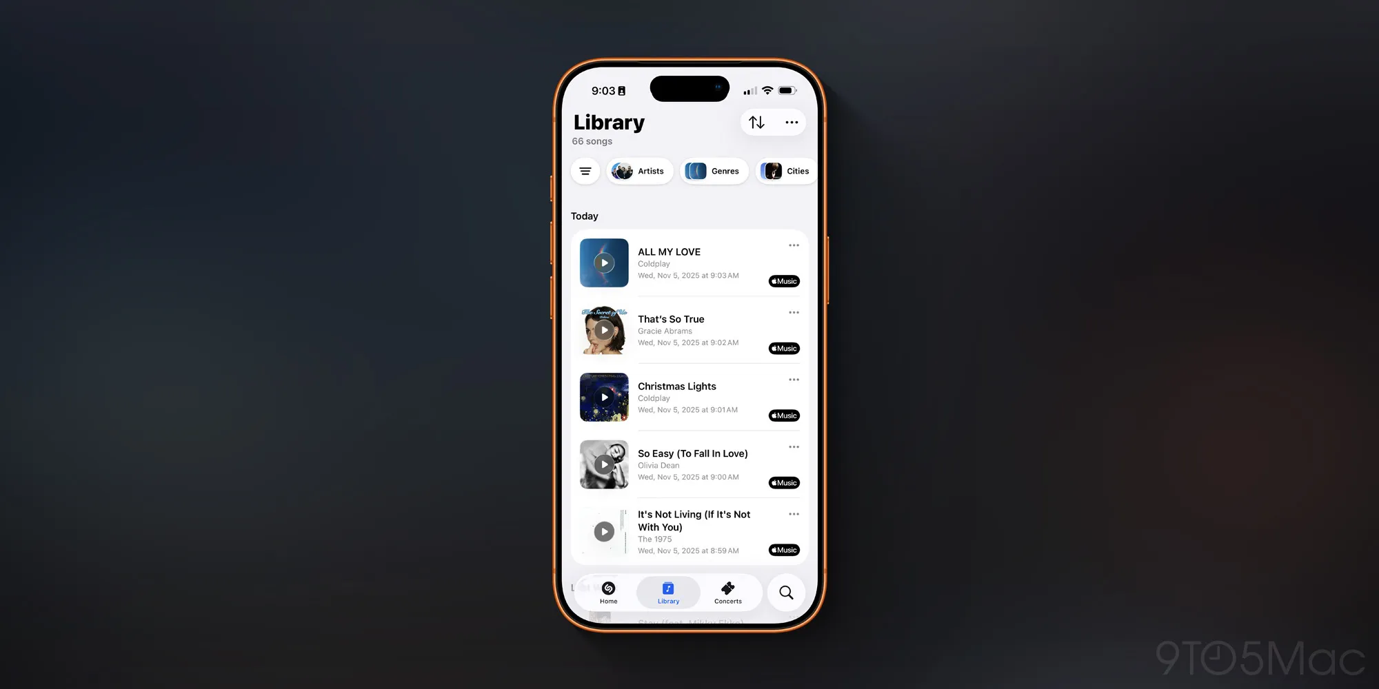 - Nová spodní lišta, která nabízí rychlé přepínání mezi sekcemi Domů, Knihovna a Koncerty.