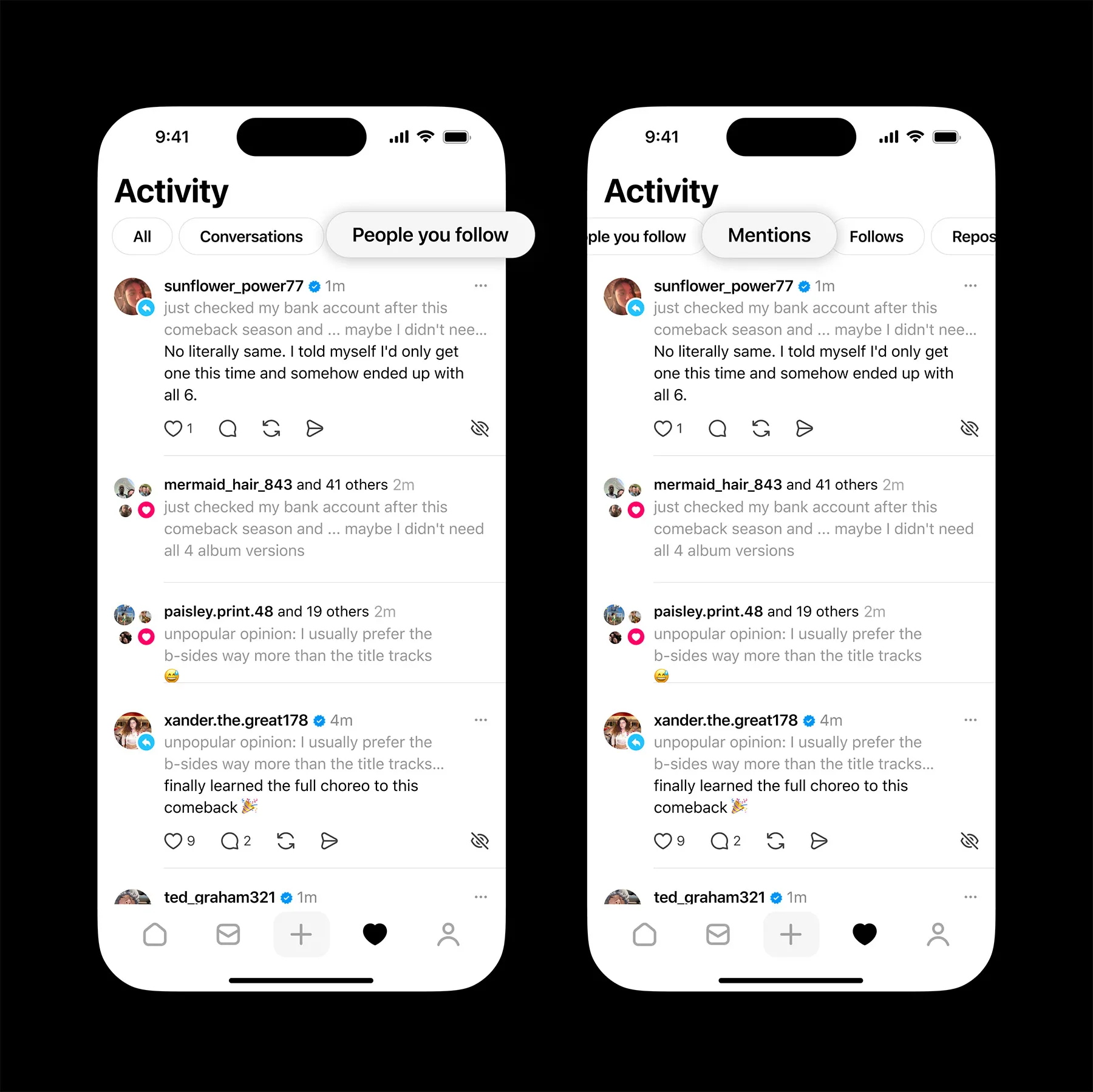 Nastavení je dostupné ve stejném menu, kde si uživatelé vybírají, kdo může odpovídat nebo citovat příspěvek. Threads také rozšiřuje filtry v záložce Aktivita, které nově obsahují zmínky a lidé, které sledujete. Tyto filtry doplňují stávající možnosti, které umožňují snadněji sledovat relevantní odpovědi a soustředit se na diskuse, které vás zajímají. Meta uvádí, že společnost nadále naslouchá zpětné vazbě uživatelů, aby Threads neustále zlepšovala. Více informací najdete na oficiálním blogu společnosti Meta.