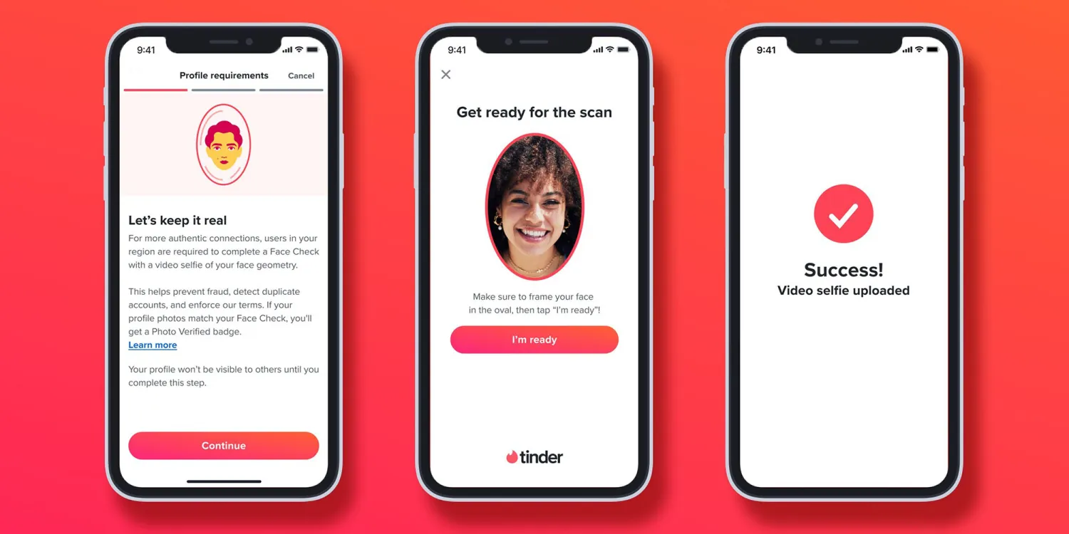 Aplikace Tinder začala vyžadovat ověření tváře pro všechny nové uživatele v Kalifornii, přičemž funkce se postupně rozšíří do dalších zemí. Noví uživatelé pořídí krátké video-selfie přímo v aplikaci.