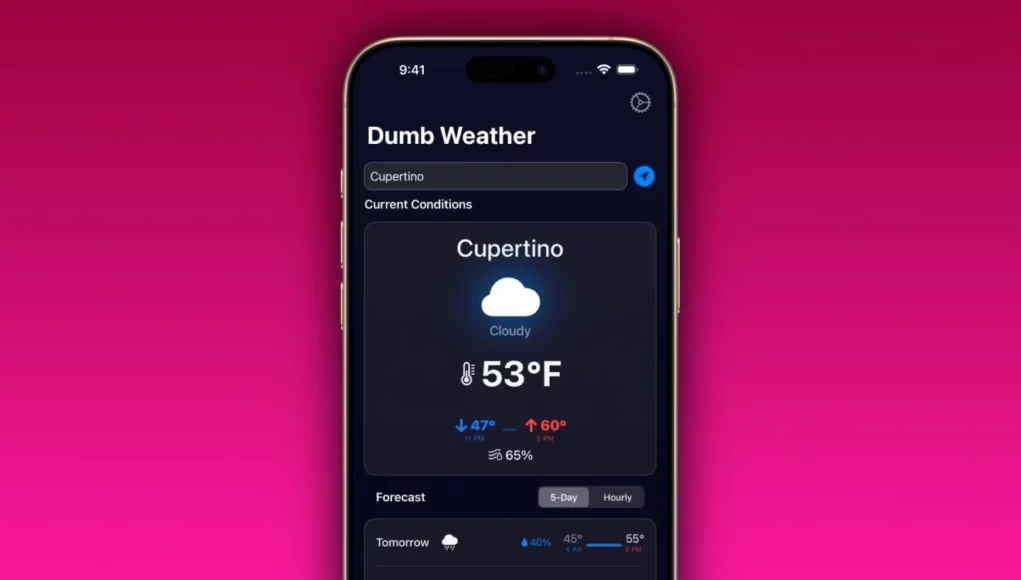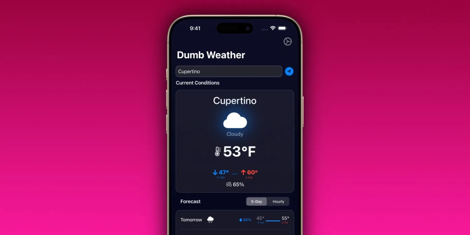 Na trhu je spousta aplikací pro předpověď počasí, ale Dumb Weather jde proti proudu. Místo zahlcení informacemi se soustředí na nezbytné údaje, které skutečně potřebujete k přehledu nad nadcházejícím dnem.