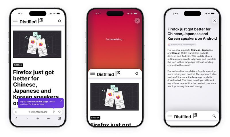 Funkce generuje shrnutí pouze pro stránky s maximálně 5 000 slovy a je možné ji vypnout, pokud nechcete nechtěná shrnutí. Tímto se Firefox stává jednou z prvních hlavních aplikací třetích stran, která využívá Apple Intelligence pro zpracování obsahu přímo na zařízení.