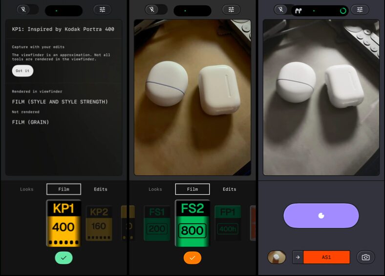 Snapseed Camera umožňuje fotografovat s řadou přednastavených filmových filtrů, inspirovaných klasickými fotografickými filmy: